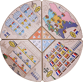 | Introduction: Become the best cheesemaker in France in this simultaneous worker-placement game. You are a French cheesemaker in the early 20th century making, aging, and selling your artisanal cheeses. Become the most prestigious cheesemaker in all of France by running a highly successful creamery and crafting exceptional cheese. Fromage is a simultaneous worker-placement game where players place Workers to make cheese and gather resources from the quadrant of the board facing them. Once all players have placed their Workers, the board rotates, aging any cheese that was made, and presenting each player with a new quadrant to place Workers into. Score Prestige Points by selling cheese to the four locations, and by efficiently managing and upgrading your creamery. |