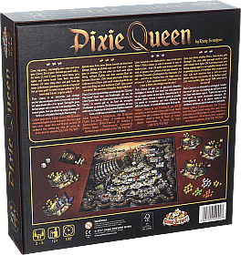 | Features: Pixies are naughty little mythical creatures, which are mainly found in the region around Cornwall and Devon. They cheat and steal from people all the time. They do this not just for their own amusement, but mainly out of fear of their own Queen who rules her people like a true tyrant, demanding that constant Offerings be made to her. Pixie Queen is a highly interactive and strategic worker-placement game about a Queen who rules over her subordinates like a true tyrant. Two to five players will take on the role of Pixie Leaders trying to outdo each other in satisfying their Queen. Each round, they will collect Silver, Gold and Food as an offering to the Queen. You will be rewarded for giving her Golden Rings, surprising her with a Special Offering or by becoming one of her Loyal Palace Servants. However the Queen is not easily satisfied. She will give Penalty Points to those that work the least throughout each round. To do well you must try to get as few Penalty Points as possible. At the end of the game, this punishment can be eased by the Reward Points you collected along the way. If you manage to end the game with a positive result, you did very well! Pixie Queen Includes: 1 Game board 5 Player screens 300 Wooden Components 59 Cardboard Tiles 1 Mining Bag 1 Whip die 1 Casino die 1 Sticker sheet Rulebooks |