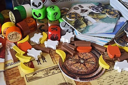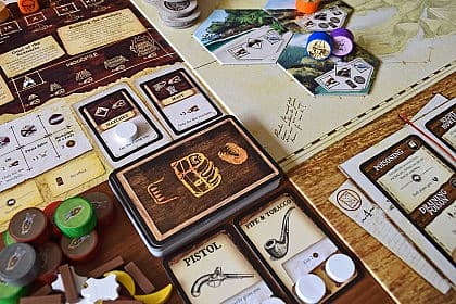 Robinson Crusoe: Adventures on the Cursed Island is a cooperative adventure game in which you are castaways on a desert island. Your task is to build a shelter, ward off potential dangers, and survive against all odds! The game may be played solo.