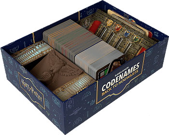 | Features: An all new Codenames experience inspired by the Wizarding World. A perfect party game for 4–8+ players. Experiment with unique house abilities that each unlock new gameplay strategies. Track your House’s scores game-to-game with the House Cup. Codenames: Back to Hogwarts Includes: 198 double-sided word & picture cards 72 maps 1 stand 9 House tiles in each of the four colors 1 Sorting Hat token 6 locked door tiles 1 Argus Filch tile 4 ability cards 8 herbology cards 8 different House-specific tokens |