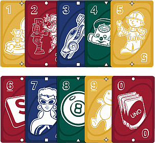 | Features: The UNO game players love with graphics featuring Mattel toys and games throughout the years. Game play matches the classic card game where players match colors and numbers to get rid of all their cards. Graphics include Hot Wheels, Barbie, Rock 'em Sock 'em Robots, Scrabble, Magic 8 Ball and more! Special ruby-red package celebrates Mattel's 80th anniversary. UNO: UNO is the card game that’s easy to pick up and impossible to put down! All it takes to win is a little coordination between colors (red, green, blue, and yellow) and numbers. Make Your Match: In this fun race to get rid of all your cards, players take turns matching one of their own cards with the card that appears face-up on the DISCARD pile. If you are unable to play a card from your own hand, you must retrieve a card from the DRAW pile. Game-Changing Moments: With 32 special action cards—Skips, Reverses, Draw Twos, Wild, and Draw Four Wild—the outcome of the game can shift at any moment! A “Wild” card can be played at any time to change the current suit color. Call Out! Don’t forget to yell “UNO” when you have but one card remaining! The first player to get rid of all their cards wins the game! UNO: 80th Anniversary - The Card Game Includes: 112 Cards Game Rules |