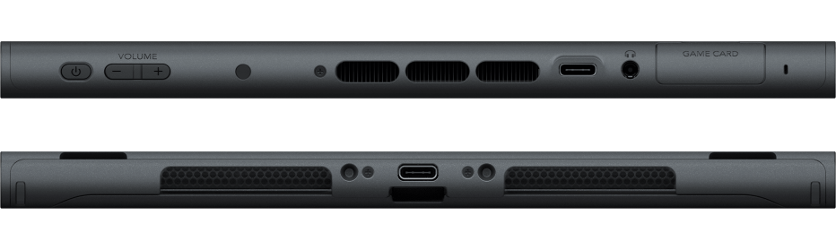 Features: Bigger screen, same thickness: Go big with a 7.9-inch screen that lets you enjoy smooth gameplay anytime, anywhere. Play with greater detail and clarity thanks to a high-definition LCD display featuring support for HDR, VRR, and up to 120 fps in compatible games. A vivid display that brings your games to life: Play on a screen that shows off the finest of details. The built-in LCD screen is capable of Full HD (1080p) resolution in handheld mode. With about double the pixel count compared to the Nintendo Switch system's display, you can enjoy your games in higher resolution and greater detail. A maximum frame rate of 120 fps enables even smoother gameplay in supported games. Variable refresh rate (VRR) technology helps games move seamlessly by preventing frame skips and flickering. High dynamic range (HDR) support brings greater, more detailed contrast between light and dark areas. New stand with a freely adjustable viewing angle: Place your Nintendo Switch 2 however you like in tabletop mode using a large, stable stand. With 150 degrees of freedom, you can always find a comfortable viewing angle. Perfect for playing together! The top of the system now has a USB-C port, in addition to one on the bottom. Plug in the included AC adapter and play in tabletop mode while the console charges. The freedom of flexibility: The stand on the back of the system can be adjusted to any angle up to 150 degrees—allowing you to freely find the comfiest placement, no matter where you're playing. Two USB-C ports: USB-C ports are now on the top and bottom of the system. Plug in the included AC adapter and play in tabletop mode while the system charges. You can also connect a compatible USB-C camera and enjoy video chatting with GameChat anytime. |