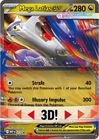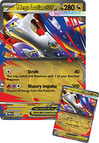 | Features: The Pokemon TCG: Mega Latias ex Box Includes: 1 foil promo card featuring Mega Latias ex 1 oversize lenticular promo card featuring Mega Latias ex 4 Pokémon TCG booster packs |