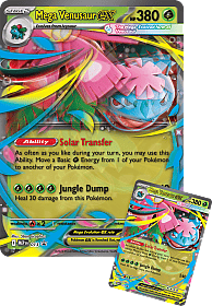 Pokemon TCG: Mega Venusaur ex Premium Collection| Introduction: Solar-Powered Smackdowns with Mega Venusaur ex! Keep your Pokémon at full flower power with help from Mega Venusaur ex! Its Solar Transfer Ability lets you move Grass Energy among your Pokémon as you please, ensuring you’re always ready to attack. In this collection, you get a playable foil promo card and an oversize lenticular promo card featuring Mega Venusaur ex, along with a tech sticker for decorating devices, binders, and notebooks. You’ll find even more Pokémon inside a stack of Pokémon TCG booster packs. |