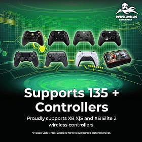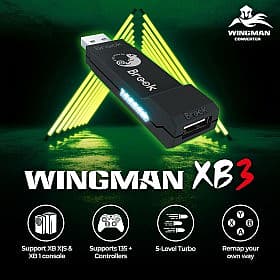 | Introduction: Unlock Seamless Gaming Across Platforms. It's your ultimate sidekick in the gaming universe. Whether you’re battling it out in the latest XB Series X/S titles, dominating the leaderboards on your trusty XB One, or fragging opponents on your gaming rig, this wireless controller adapter has your back. Wingman XB 3 supports Xbox modern consoles, XB 1, and XB X|S. Choose your preferred controller to play Xbox games. Wingman XB 3 let you play Xbox games with more than 135 different wired and wireless controllers, includes XB X|S, XB 1, XB Elite2, PS5, PS4, PS3 and Switch official and licensed controllers. Enjoy every game on every platform! Visit www.brookaccessory.com/products/wingmanxb3/index.html for a list of supported controllers and fighting sticks. Note: It is recommended that you download and install the latest firmware by visiting the Brook Device Support page. |