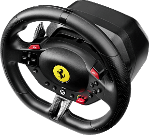 | Features: Racing wheel and pedal set compatible with Xbox Series, Xbox One, PC (Windows 10/11). Officially licensed by Ferrari, inspired by the real Ferrari 296 GTS. More immersion - Bungee cord technology with recentering and linear resistance. More control - 240° rotation angle. Driving support - For beginners and advanced users. Manettino dial: 3 profiles with or without driving support. Easy to install - Quick clamping system for desks and tables up to 1.8" / 4.5 cm thick. Great for playing Forza Horizon 5! INSPIRED BY THE FERRARI 296 GTS: Drive like a real race driver with this official racing wheel (7:10 scale) inspired by the Ferrari 296 GTS. The wheel rim (10" / 25.5 cm in diameter), with its imitation carbon accents and high-performance paddle shifters, will give you a truly lifelike experience of driving a Ferrari. Join the Tifosi and drive the world's most famous Italian cars. Forza Ferrari! This product is officially licensed by Ferrari. A MORE IMMERSIVE RACING EXPERIENCE: Bungee cord technology automatically returns the wheel rim to the centered position and provides linear resistance for real driving sensations. Thanks to its 240° rotation angle (compared with 180° for a standard gamepad), you can be more precise in your maneuvers and take winning trajectories. The racing wheel also features all the buttons found on a standard gamepad, for total control in games. Your racing games will be more intense and immersive than ever! 3 DRIVING SUPPORT PROFILES: The selector dial inspired by Ferrari’s iconic Manettino lets you switch between the 3 driving support profiles: from the most realistic to the easiest to use. In this way, T98 Ferrari 296 GTS adapts to all gamer profiles — from beginners to experienced drivers. Switch from one profile to another on the fly and share unforgettable moments with family and friends. COMPACT AND EASY TO INSTALL: The racing wheel can be installed quickly and without any tools, thanks to its clamping system for mounting on desks and tables (up to 1.8″ / 4.5 cm thick). Its compact, space-saving design makes it easy to put away after each gaming session. No additional software is required: just plug and play! PEDAL SET WITH HALL EFFECT SENSORS: A 2-pedal pedal set with accelerator and brake is included. The pedals feature Thrustmaster’s patented H.E.A.R.T. Hall effect sensors to ensure that the product will retain its razor-sharp precision for years to come. The pedal set’s compact design allows it to even be installed and used in small spaces. GREAT FOR FORZA HORIZON 5 ON XBOX SERIES, XBOX ONE AND PC: As T98 Ferrari 296 GTS is an officially-licensed Microsoft product, the racing wheel functions flawlessly on Xbox Series and Xbox One. It is also compatible with PC (Windows 10/11). T98 Ferrari 296 GTS is great for Forza Horizon 5, and is plug and play in most racing games*. *Complete list available on the official Thrustmaster website. *Complete list available on the official Thrustmaster website. COMPATIBLE GAMES AS OF JANUARY 2026: Forza Horizon 5 Forza Motorsport The Crew Motorfest EA Sports F1 25 EA Sports WRC Test Drive Unlimited – Solar Crown Farming Simulator 25 |